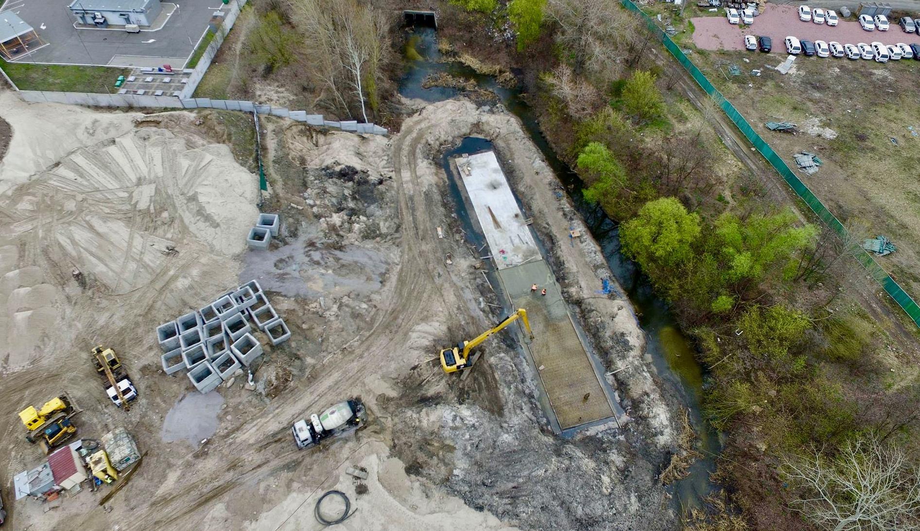 В Киеве возле ТРЦ «Блокбастер» часть реки Почайны протяженностью около 80 метров засыпают песком и заливают бетоном, загоняя под дорогу. Об этом на своей странице в Facebook сообщил депутат Киеврады Константин Богатов, опубликовав фото и видео.