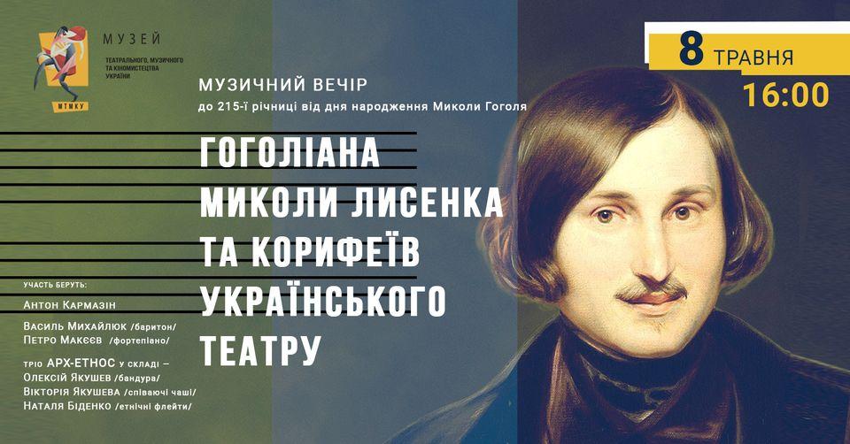 8 травня о 16:00  киян запрошують на  «Гоголіана Миколи Лисенка та корифеїв українського театру».