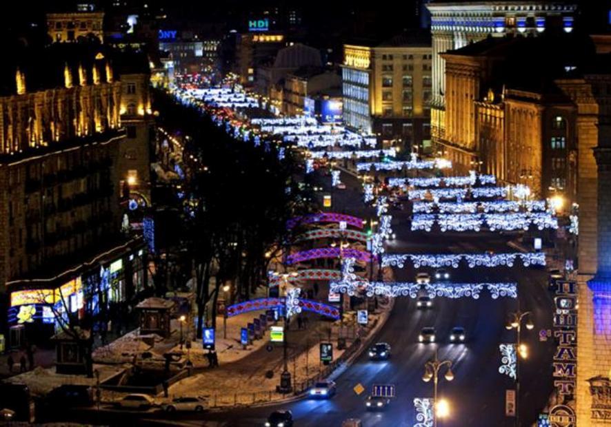 С начала декабря движение транспорта по Крещатику в Киеве открыто в выходные и праздничные дни до окончания новогодних и рождественских празднований на Софийской площади.