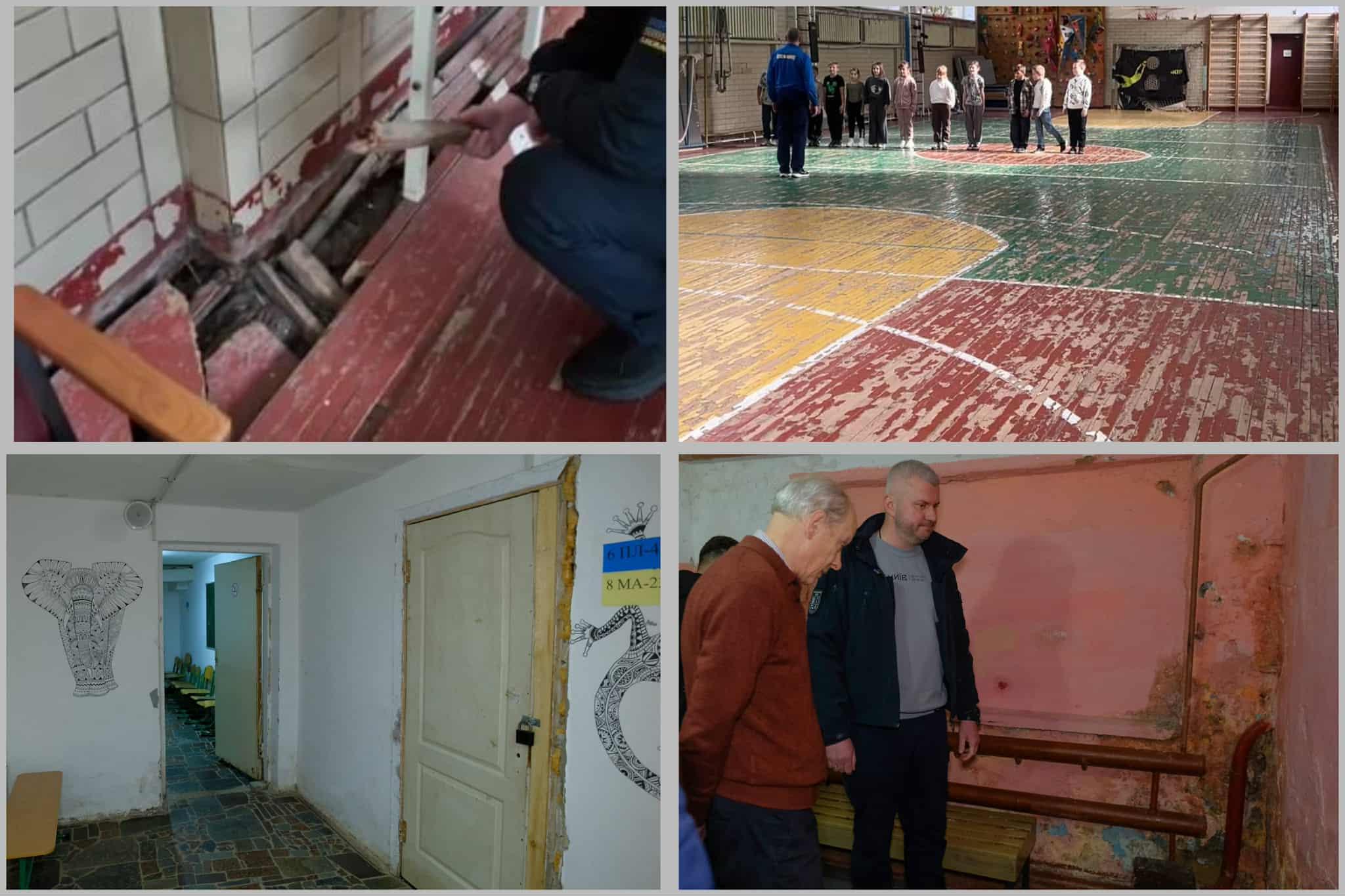 Оглянув їдальню, укриття, навчальні приміщення — і, чесно кажучи, картина невтішна. А спортивна зала й роздягальні — то взагалі окрема історія. Там ремонтів не було роками…