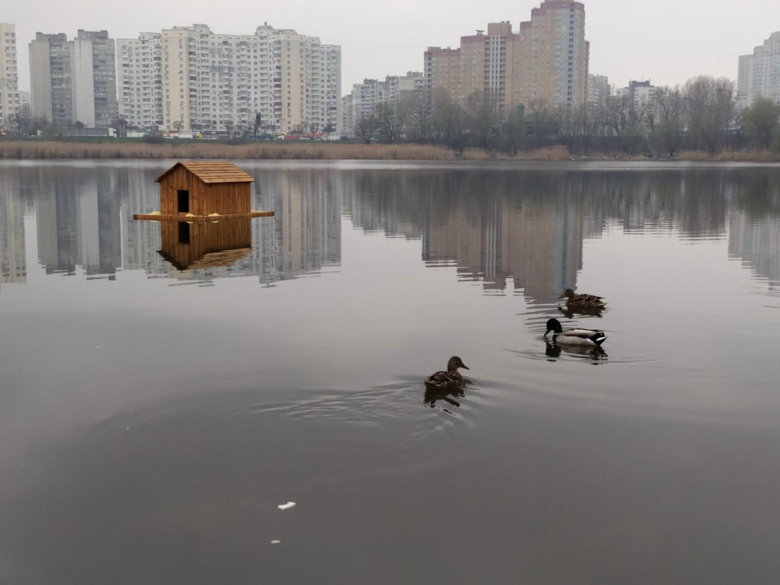 Сьогодні на озері "Лебедине" в однойменному парку встановили два дерев’яні будиночки для качок. Змайстрували та встановили їх комунальники.