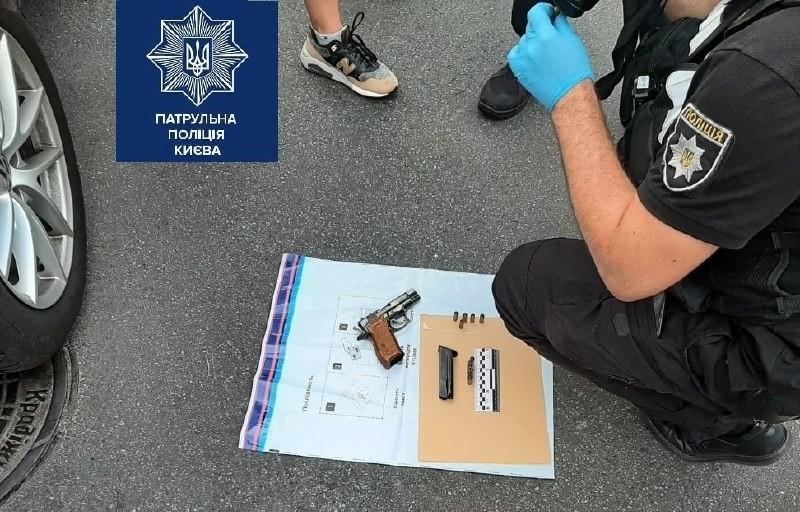 Патрульні на наступному перехресті транспортний засіб зупинили, чоловіка затримали та роззброїли. Наразі на місці працюють слідчі Печерського управління поліції.