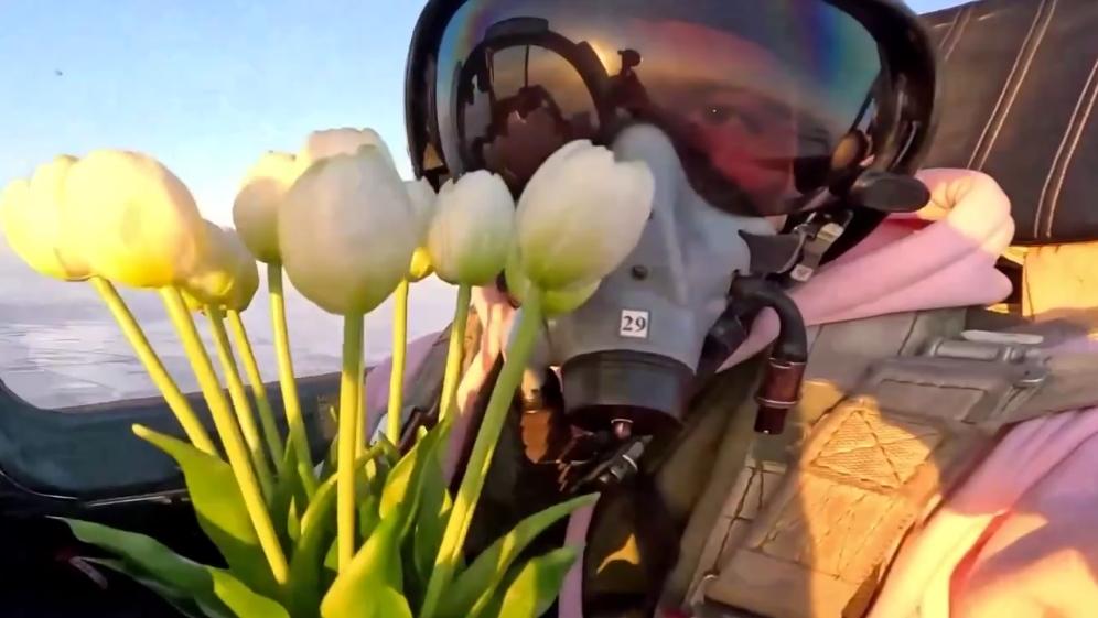 Як створити незабутнє привітання із святом – знає пілот винищувача Су-27. Щоб привітати жінок із Міжнародним днем боротьби за права, він сів за штурвал свого літака з букетом весняних квітів і зняв у небі захоплюючий ролик на шаленій швидкості.