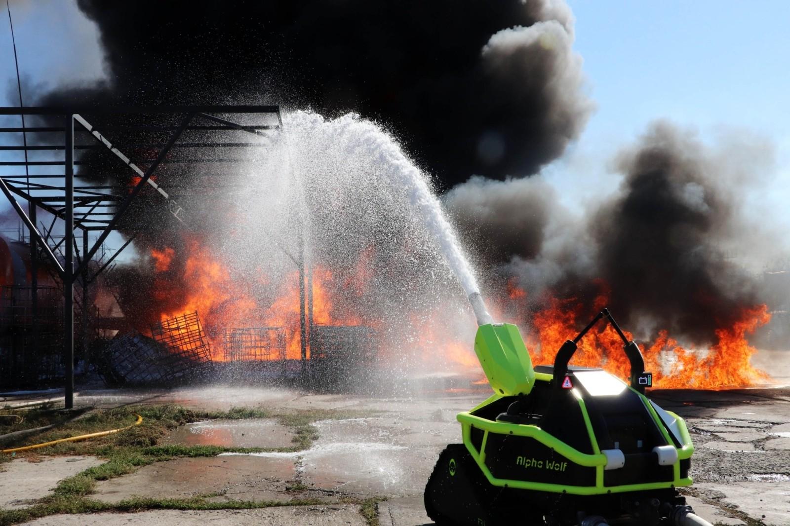 ДСНС опублікувала фото з ліквідації пожежі на Київщині, а “ВК” помітив на фото маленького, але потужного помічника рятувальників – тактичного робота Alpha Wolf R1.