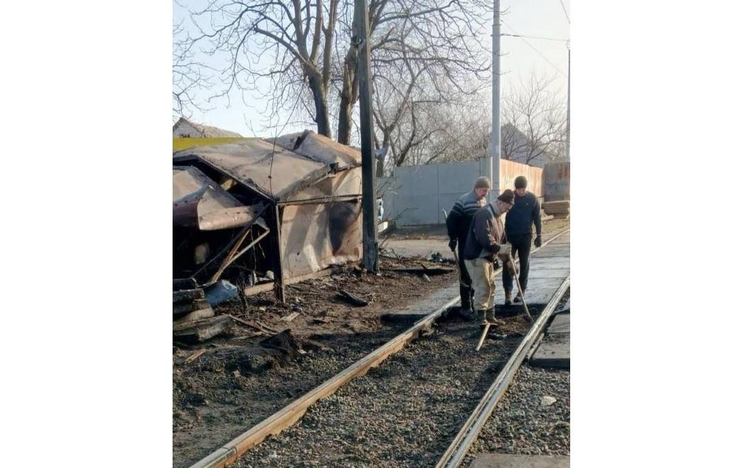 Внаслідок повітряної атаки у Святошинському районі пошкоджені трамвайні колії за 100 метрів від трамвайного депо. Також вибуховою хвилею вибило вікна у кількох трамваях.
