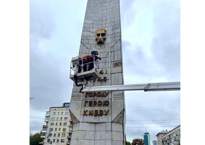 Як зазначають у Департаменті, під час виконання робіт прибрали зірки на бічних сторонах обеліска та анотаційну дошку російською мовою. А також змінили напис “1941»” на “1939” – рік, коли почалася Друга світова війна.