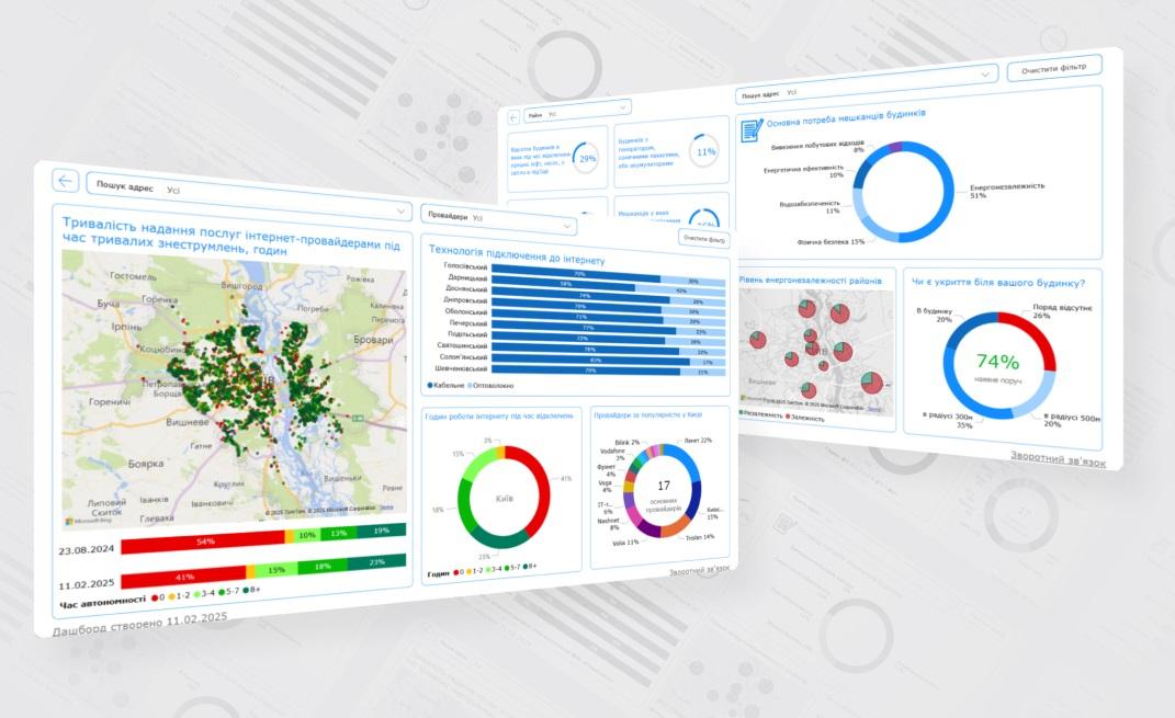 На Офіційному порталі Києва додали два нові дашборди завдяки активній участі киян в опитуванні, що стосувалось готовності будинків до енергетичних криз і роботи інтернет-провайдерів під час знеструмлень.