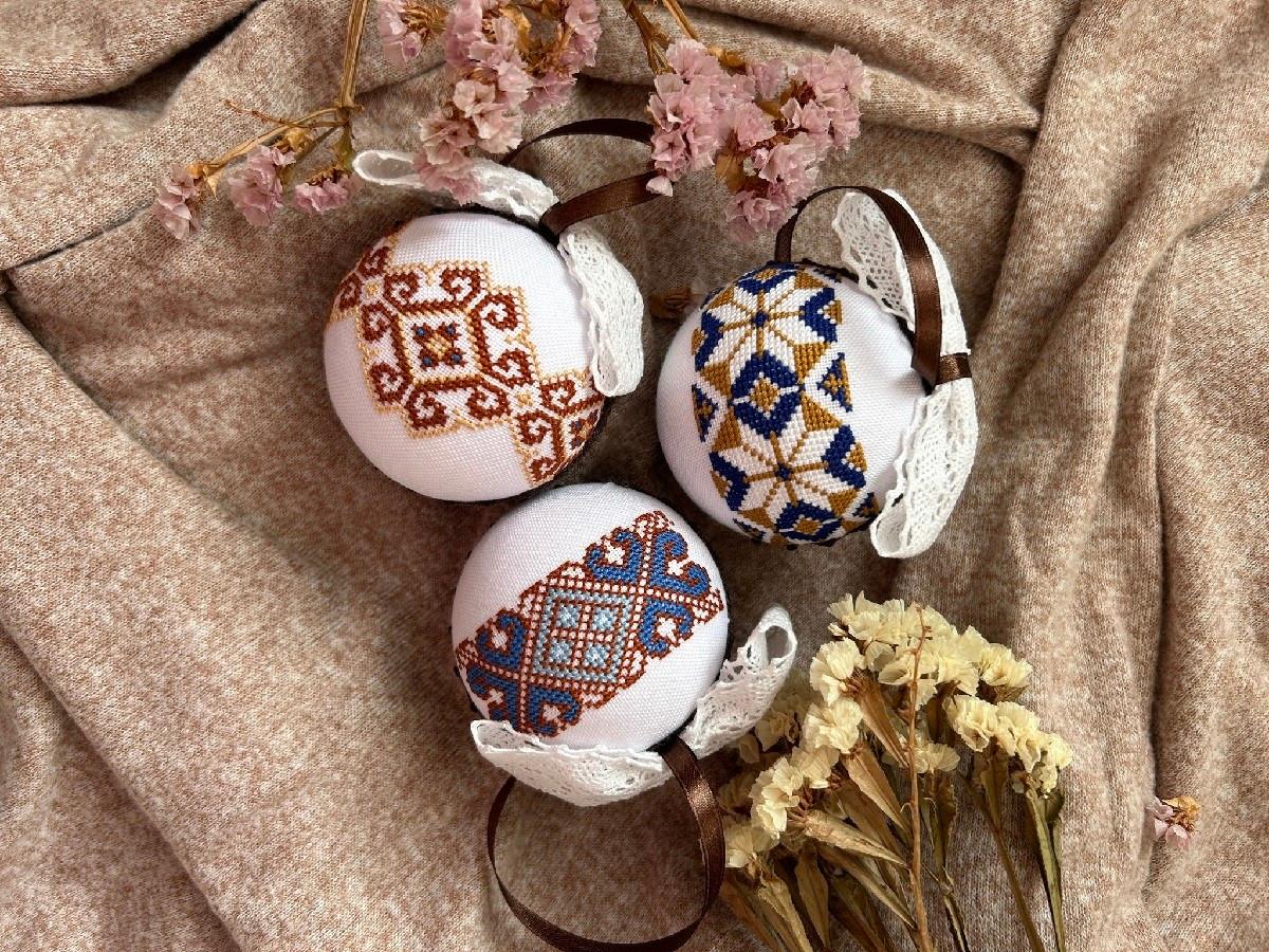 Так цьогоріч виглядає колекція різдвяних кульок у MokoshaArtShop, прикрашених вишитим хрестиком в українських мотивах та з патріотичними малюнками.