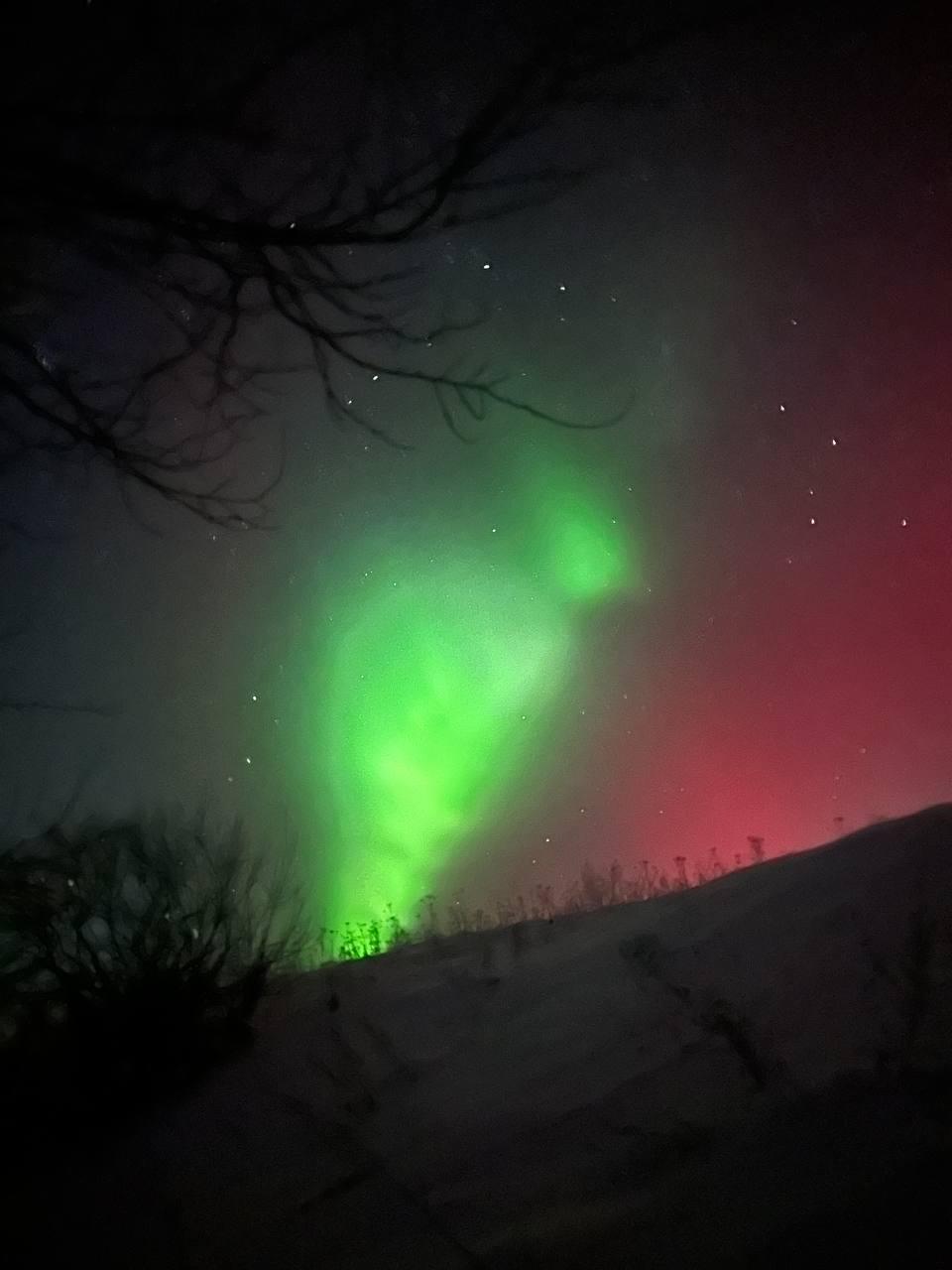 Північне сяйво або «Аврору» могли побачити завдяки прозорості атмосфери (не було масових хмар/туманів) і особливо сильним цього разу викидам потоків сонячних частинок.