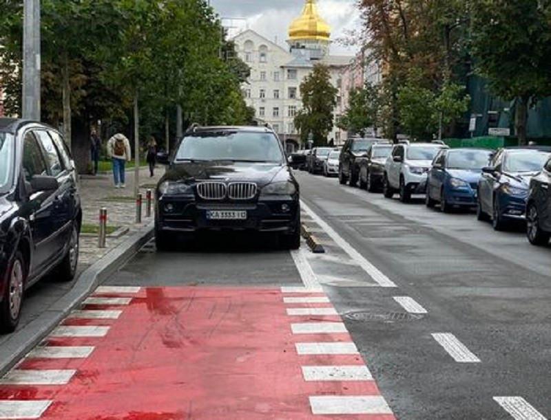 За його словами, виламані делінеатори лежали на тротуарі. Атим часом, на велодоріжці вже паркуються автомобілі.