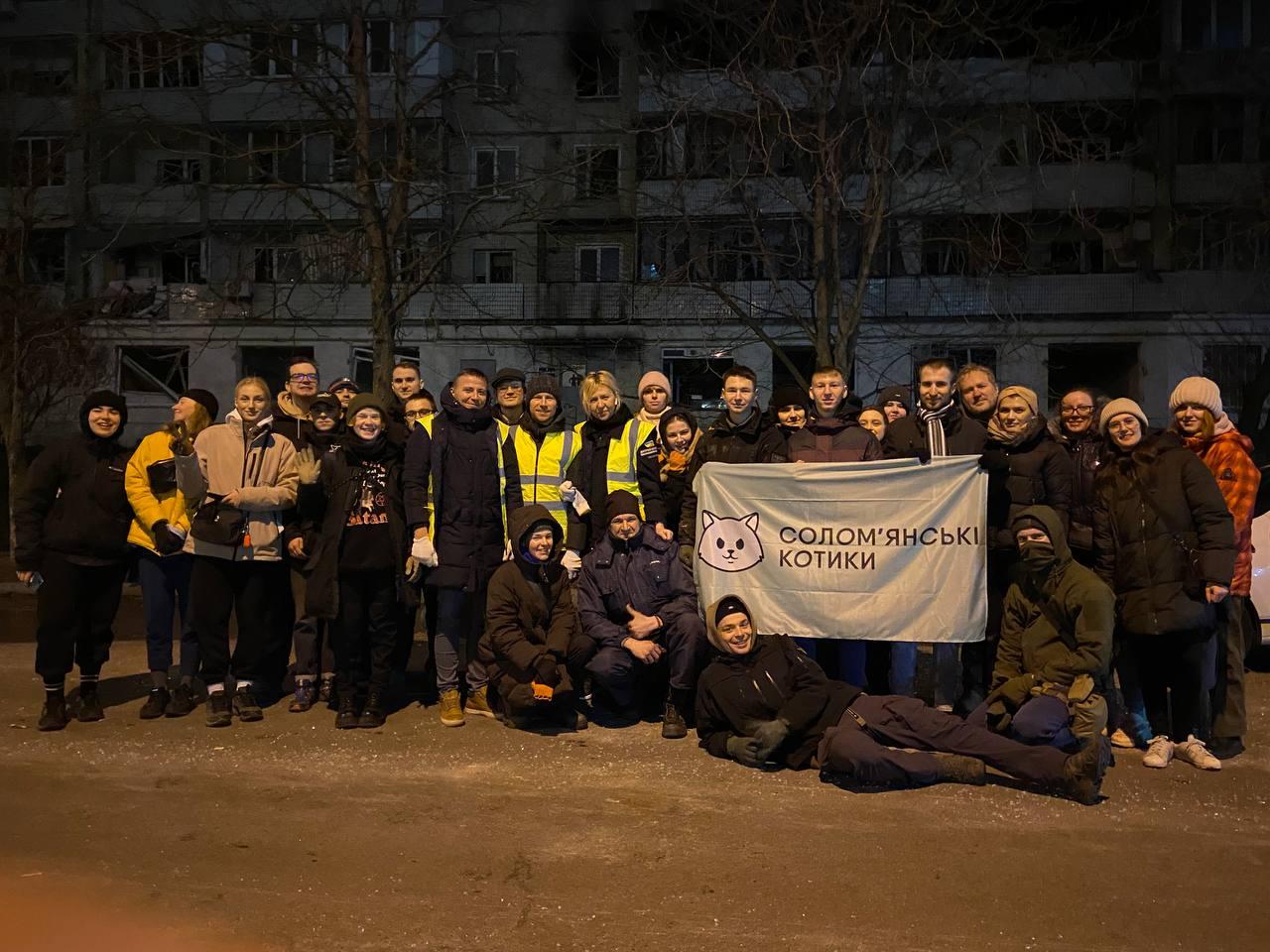 Як розповіли волонтери Солом’янські котики, люди прийшли на їх заклик і долучилися до прибирання на території пошкоджених ворожою атакою будинків.