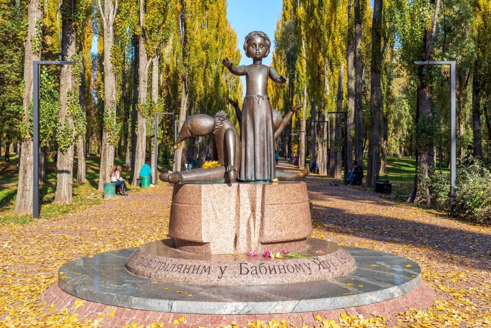 Йдемо з моїм співрозмовником центральними алеями Бабиного Яру. Зупиняємося біля Пам’ятника дітям, розстріляним у цьому урочищі.  Запитую чи є якісь конкретні цифри про кількість маленьких киян, які не пережили вересень 1941-го і назавжди залишилися тут.