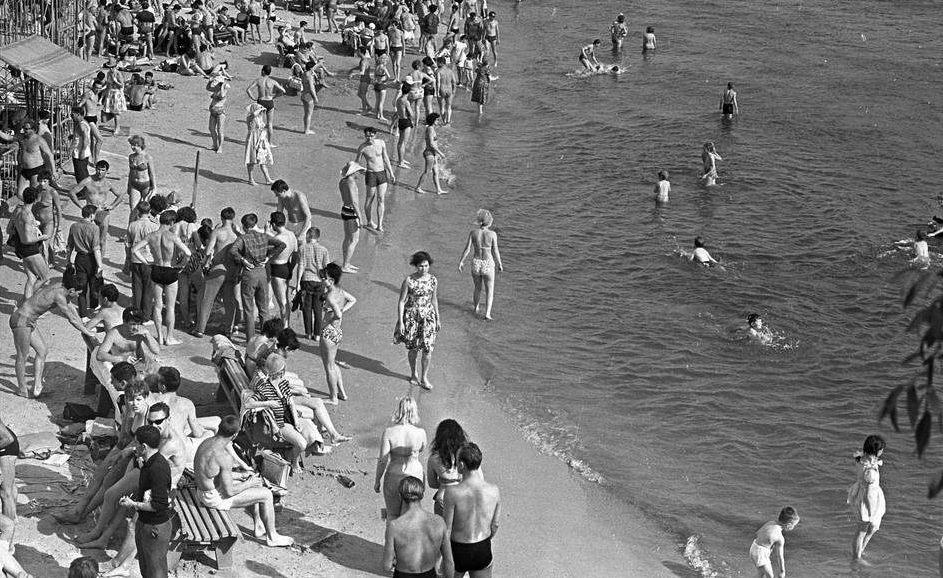 Крім того, Роман Бровко у групі “Старі фото Києва” опублікував знімок киян на Пішоходному мосту по дорозі з пляжів Труханова острова.