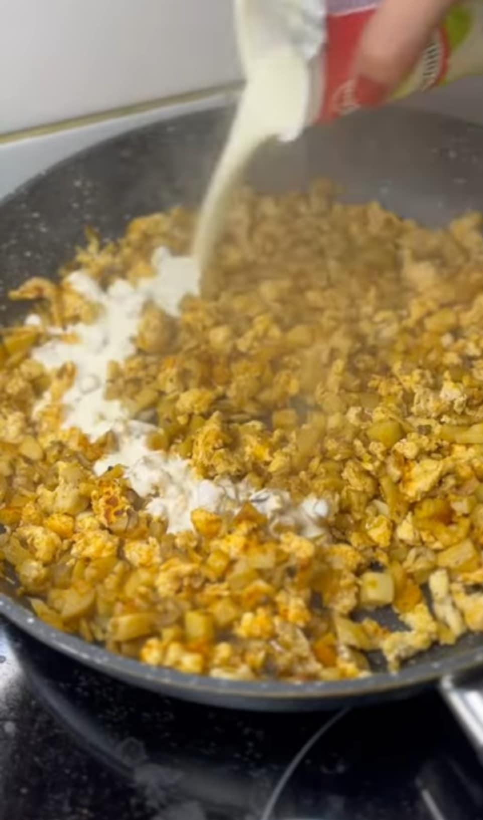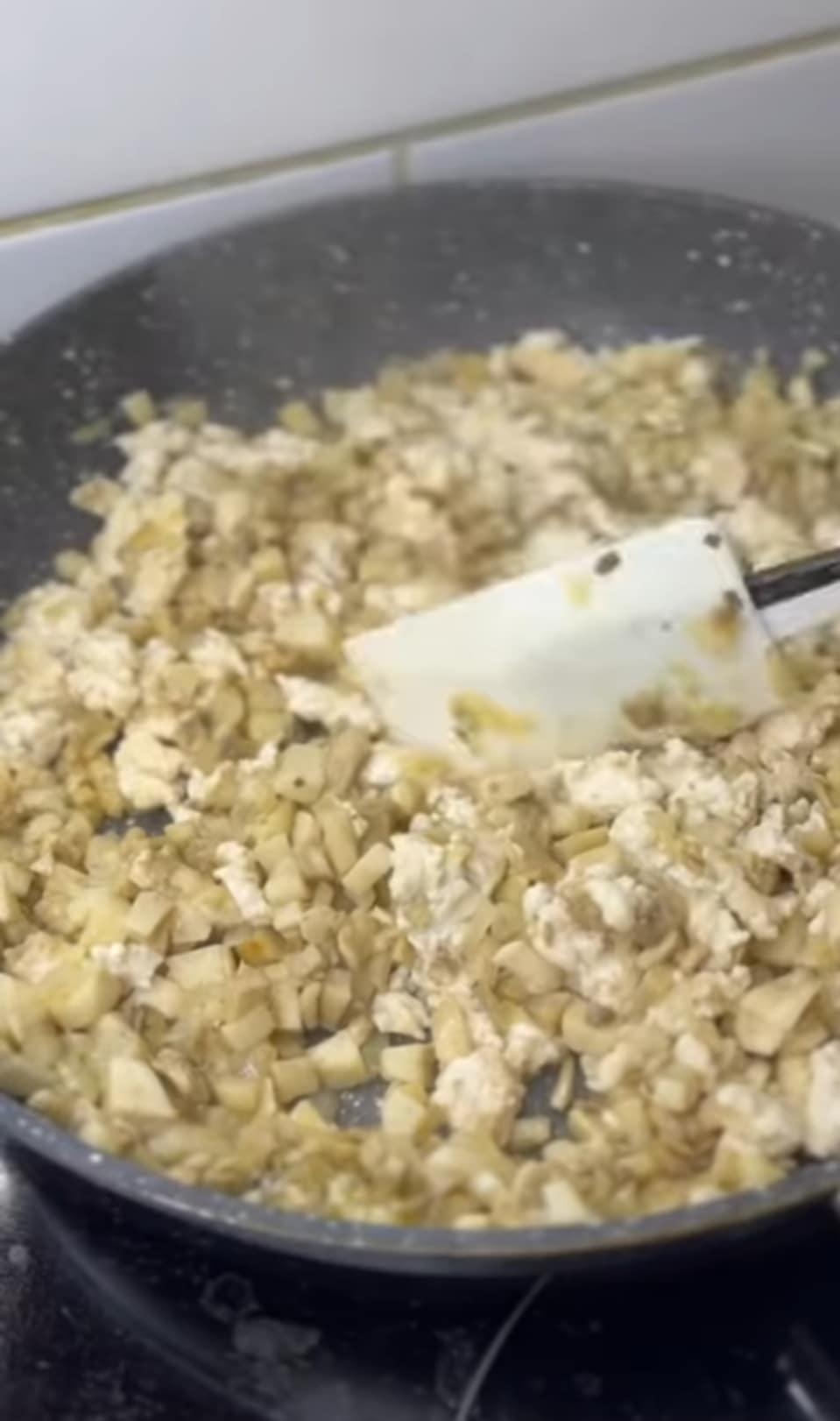Додайте в сковорідку подрібнені шматки печериць та обжарте до золотистого кольору. Додайте вершки.