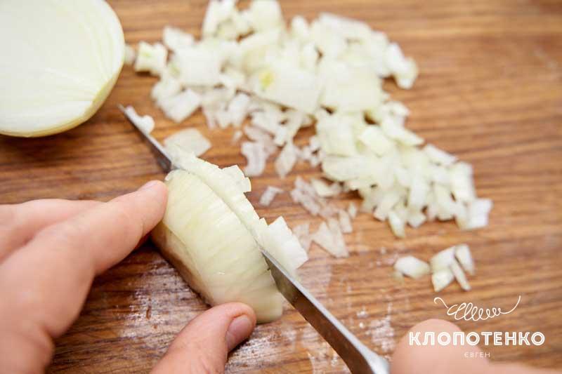 Почистіть цибулину та наріжте дуже дрібними кубиками.