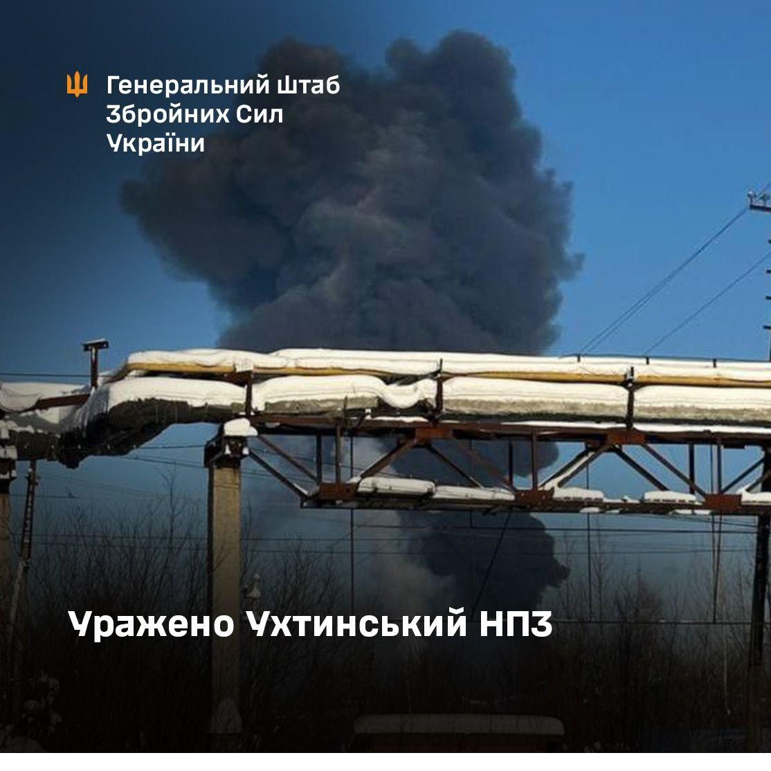 У ніч проти 12 лютого підрозділи Служби безпеки України та інших складових Сил оборони нашої держави уразили Ухтинський нафтопереробний завод (м. Ухта, Республіка Комі, рф). Відстань від державного кордону України до нього становить 1750 кілометрів — це один із найдальших підтверджених ударів по російській нафтопереробній інфраструктурі з початку повномасштабного вторгнення.