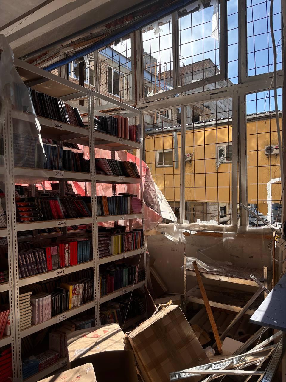 Внаслідок обстрілу та гасіння пожежі частину книжок пошкоджено.