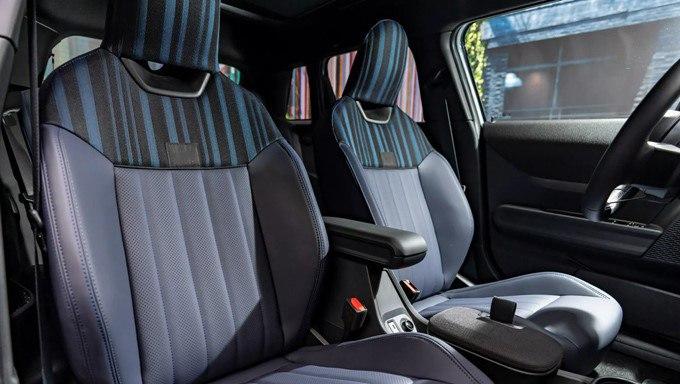 Всередині – спортивні сидіння Nightshade Blue, які поєднують штучну шкіру Vescin з двоколірною текстильною верхньою частиною.
