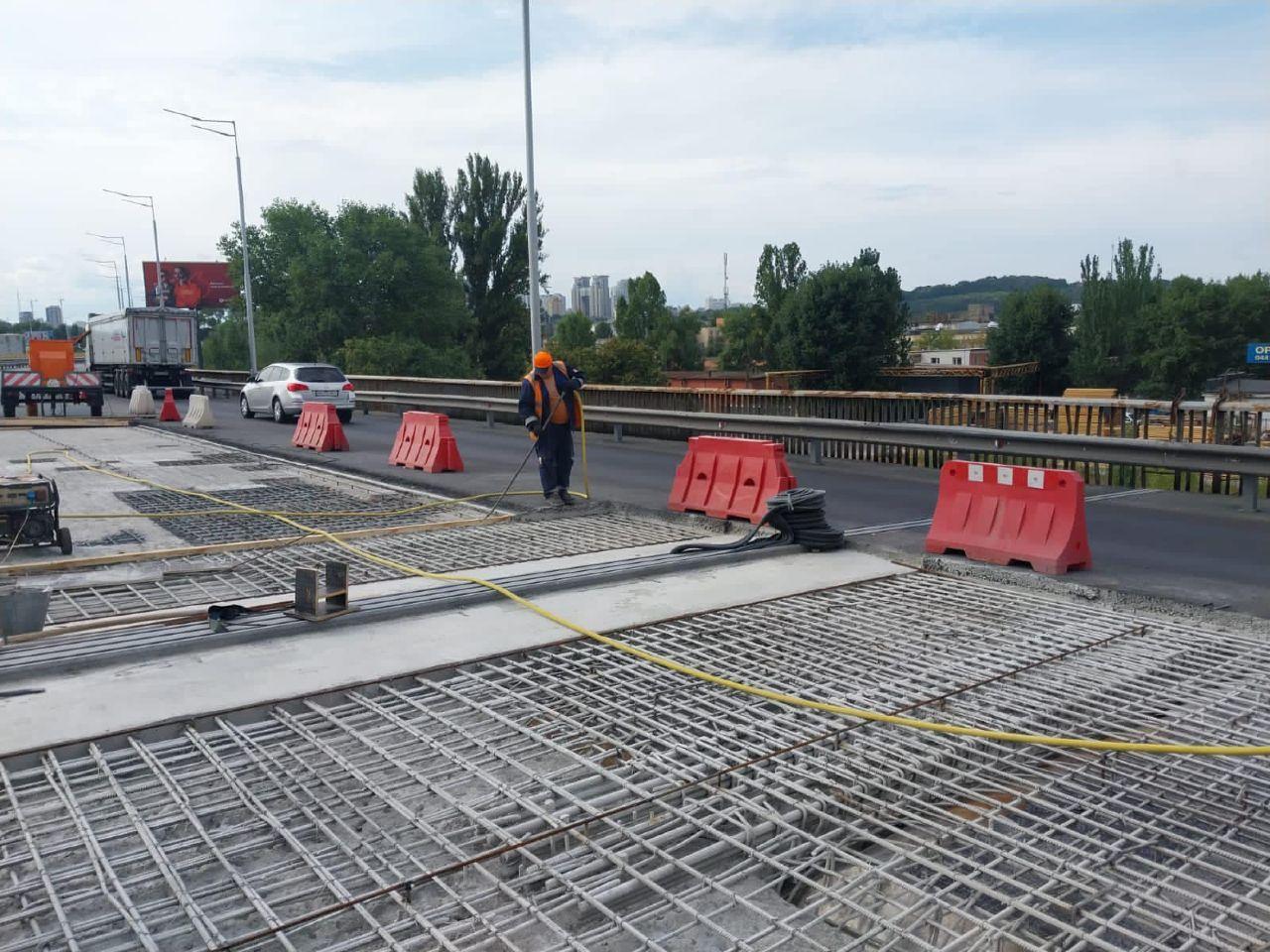 За його словами, сьогодні у Києві продовжуються ремонтні роботи на мостових спорудах: шляхопровід на перетині вул. Новокостянтинівської з вул. Олени Теліги та просп. Степана Бандери; шляхопровід через залізничні колії на вул. Толстого; шляхопроводи Каховські № 1 та №2 біля станції метро «Лівобережна»; естакадний з’їзд з Дніпровського узвозу на Набережне шосе біля станції метро «Дніпро»; верхова та низова частини правобережної естакади Південного мостового переходу через р. Дніпро.