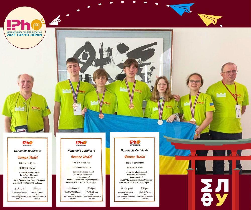 Серед учасників від України цьогоріч було троє випускників Українського фізико-математичного ліцею Київського національного університету імені Тараса ШевченкаМарина Богдан, Віктор Лук’яніхін і Петро Суворов. Вони стали бронзовими призерами 53-ї IPhO2023.