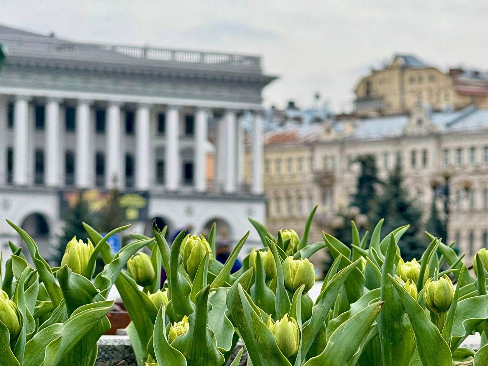 Тюльпани висадили у листопаді 2020 року на клумбах Майдану Незалежності та біля будівлі Міністерства закордонних справ.