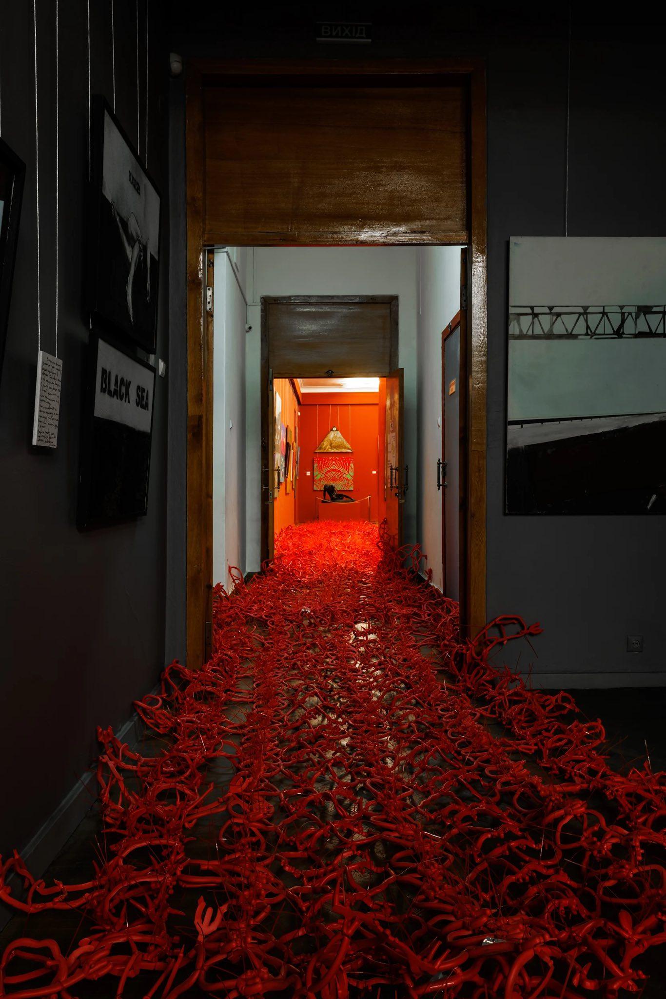Валерій додав, що у Дніпрі, яке розташоване за 95 кілометрів від фронту, інсталяція стає фізичною та емоційною відповіддю на події, що відбуваються — червона, сітчаста структура асоціюється з “вразливістю людського тіла, традиційними культурними орнаментами та повзучою тінню насильства”.