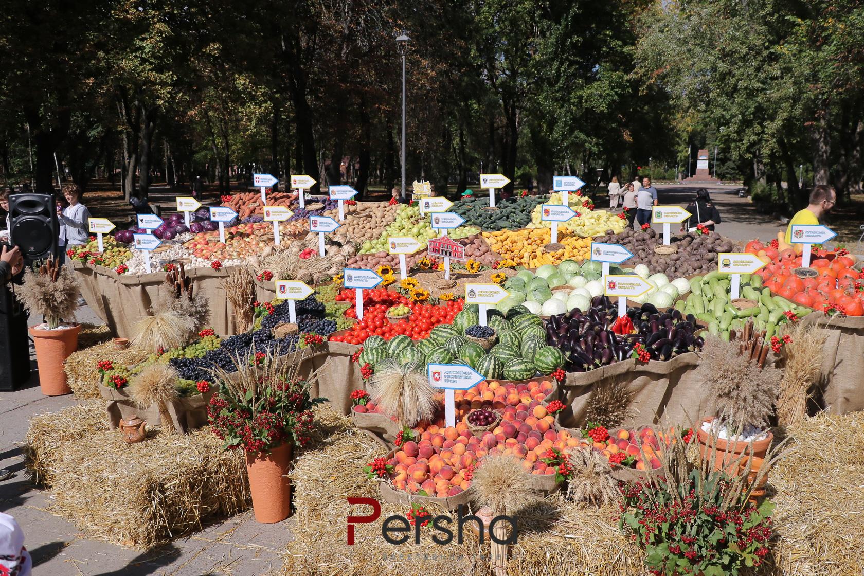 Як повідомляється, найбільшу карту України з цьогорічного врожаю зернових, технічних культур, овочів та фруктів, вирощених на території нашої держави, виклали у центрі міста. Цю інсталяцію занесли до Книги рекордів України в категорії “Найбільші об’єкти”.