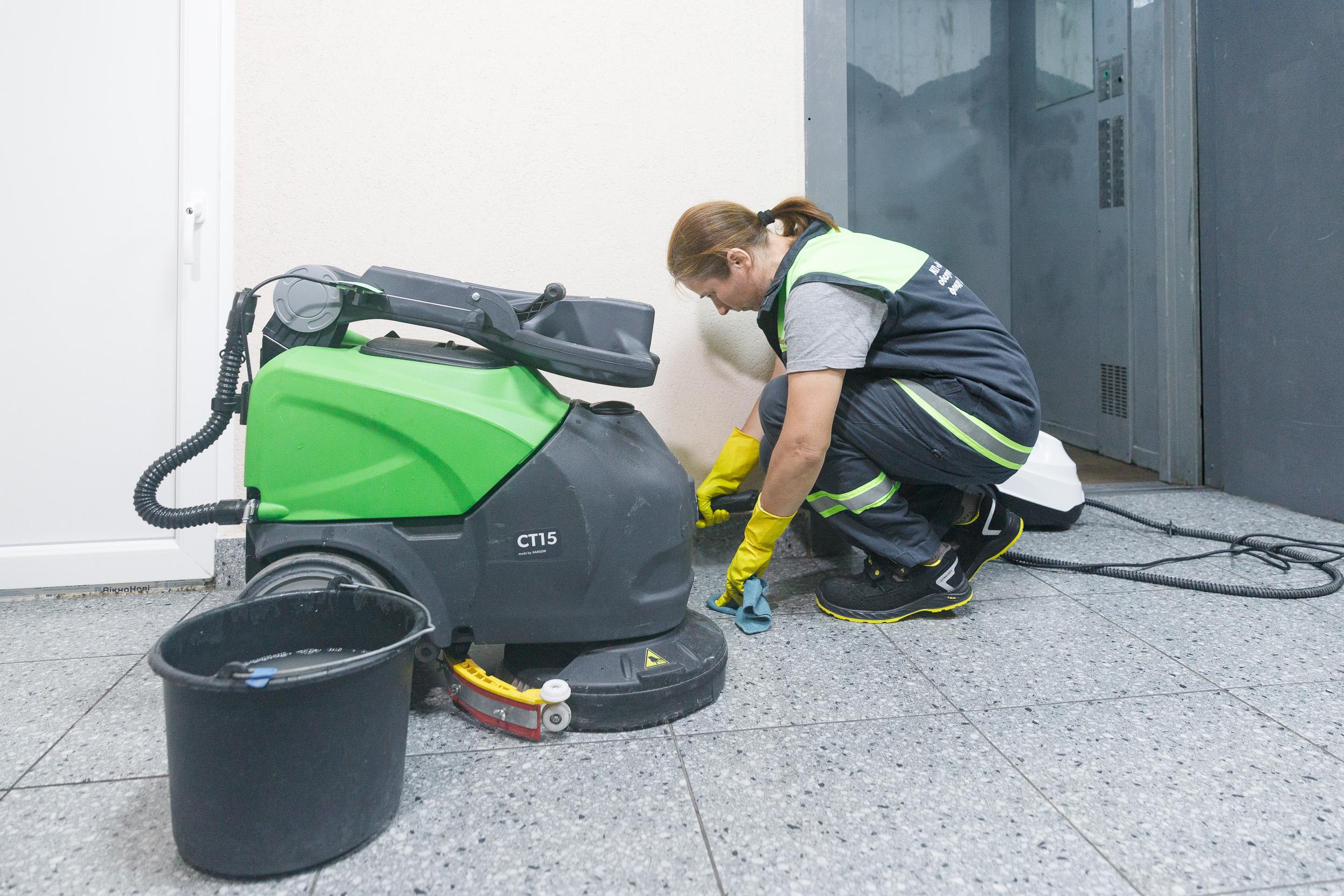 За його словами, бригади використовують сучасне обладнання, зокрема пароочисники, підлогомийні машини та пилососи, для ретельного прибирання місць загального користування – сходів, коридорів, стін, вікон і дверей. Роботи виконуються за поадресними графіками в межах послуги з управління житловим фондом, яка діє з березня 2025 року.