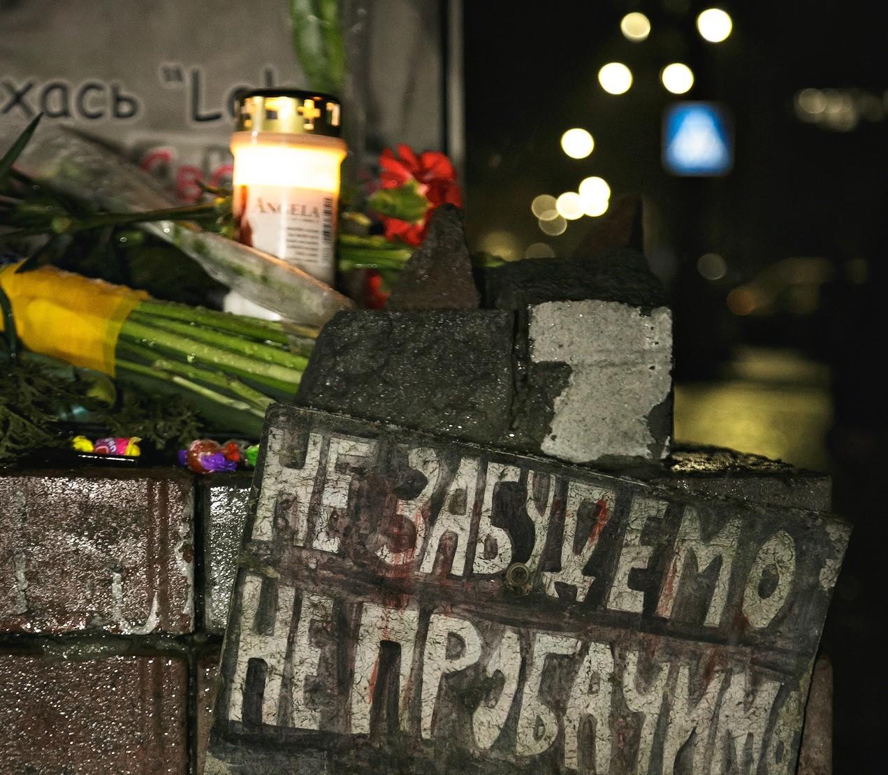 Лампадки, квіти, гімн України та гасла “Небесній сотні Слава”, “Герої не вмирають” – протягом маршруту було кілька зупинок, де згадували кожного з перших загиблих Героїв Небесної Сотні.
