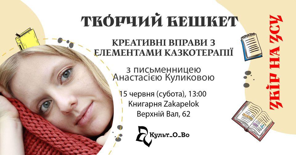 Зустріч проведе Анастасія Куликова, письменниця, авторка казкових історій для дітей і дорослих, учасниця волонтерської ініціативи “Культ_о_Во”.