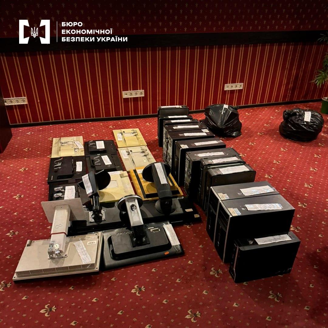 Під час проведення обшуків детективи БЕБ вилучили понад 70 комплектів комп’ютерної техніки, відеореєстратори, роутери, чекові апарати, мобільні телефони, чорнові записи тощо.
