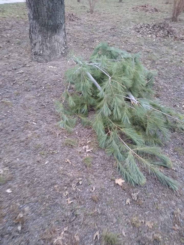 Невідомі пошкодили 7 дерев сосни Веймутової. Молоді дерева зламали та викинули поряд.