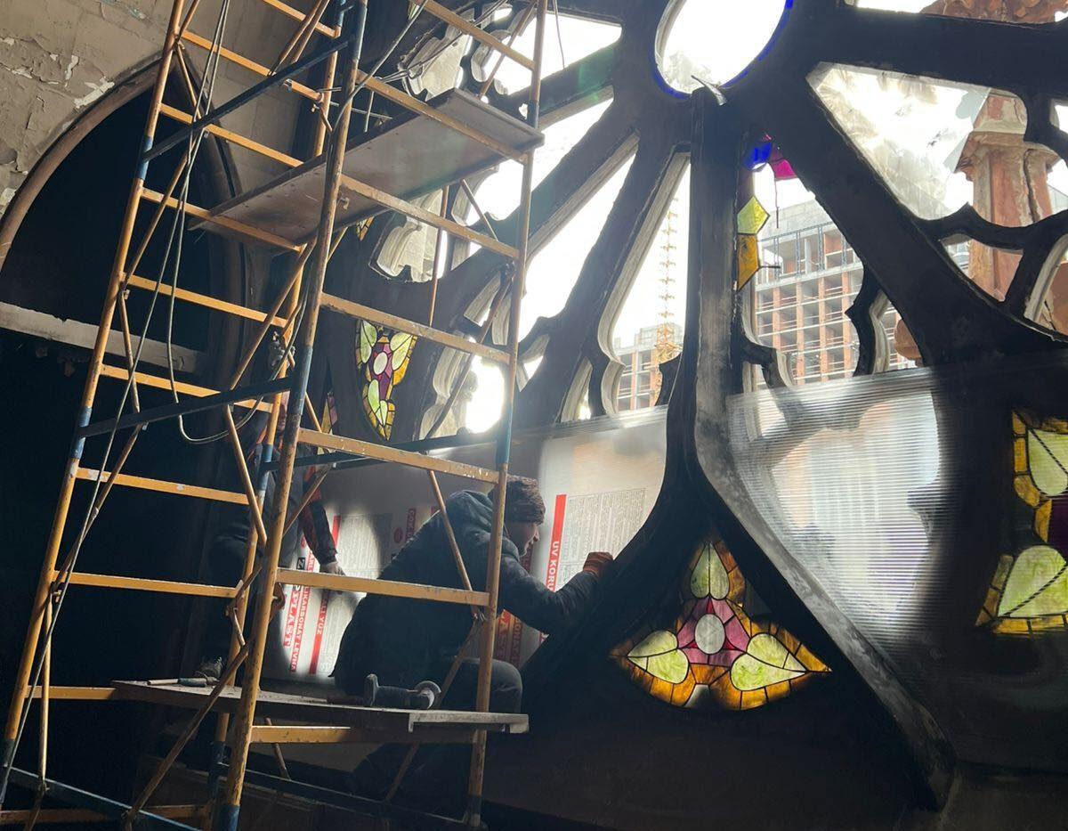 Тож парафія змушена була власними силами здійснити тимчасові заходи — закрити дах і вікна покриттям, щоб убезпечити інтер’єр від негоди та уникнути подальшого руйнування святині напередодні зими.