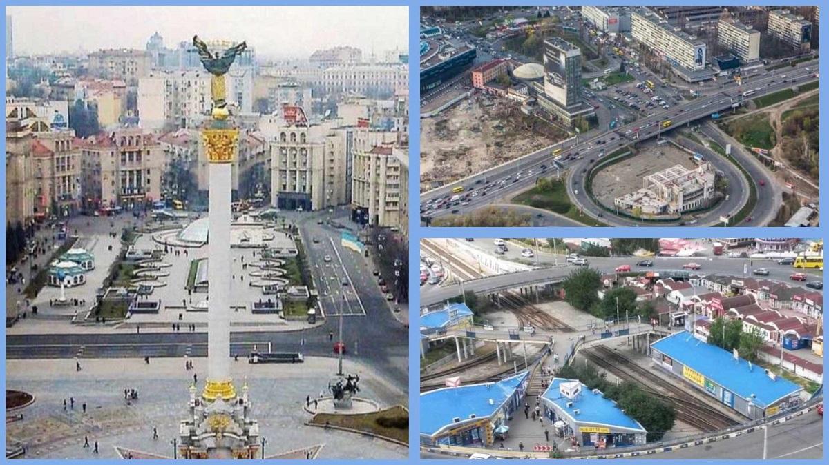 На цих світлинах вигляд сучасних Майдану Незалежності, Либідської площі, вулиці Симона Петлюри та району розташування Колібрісу, а також цих же вулиць та площ 40 років тому.