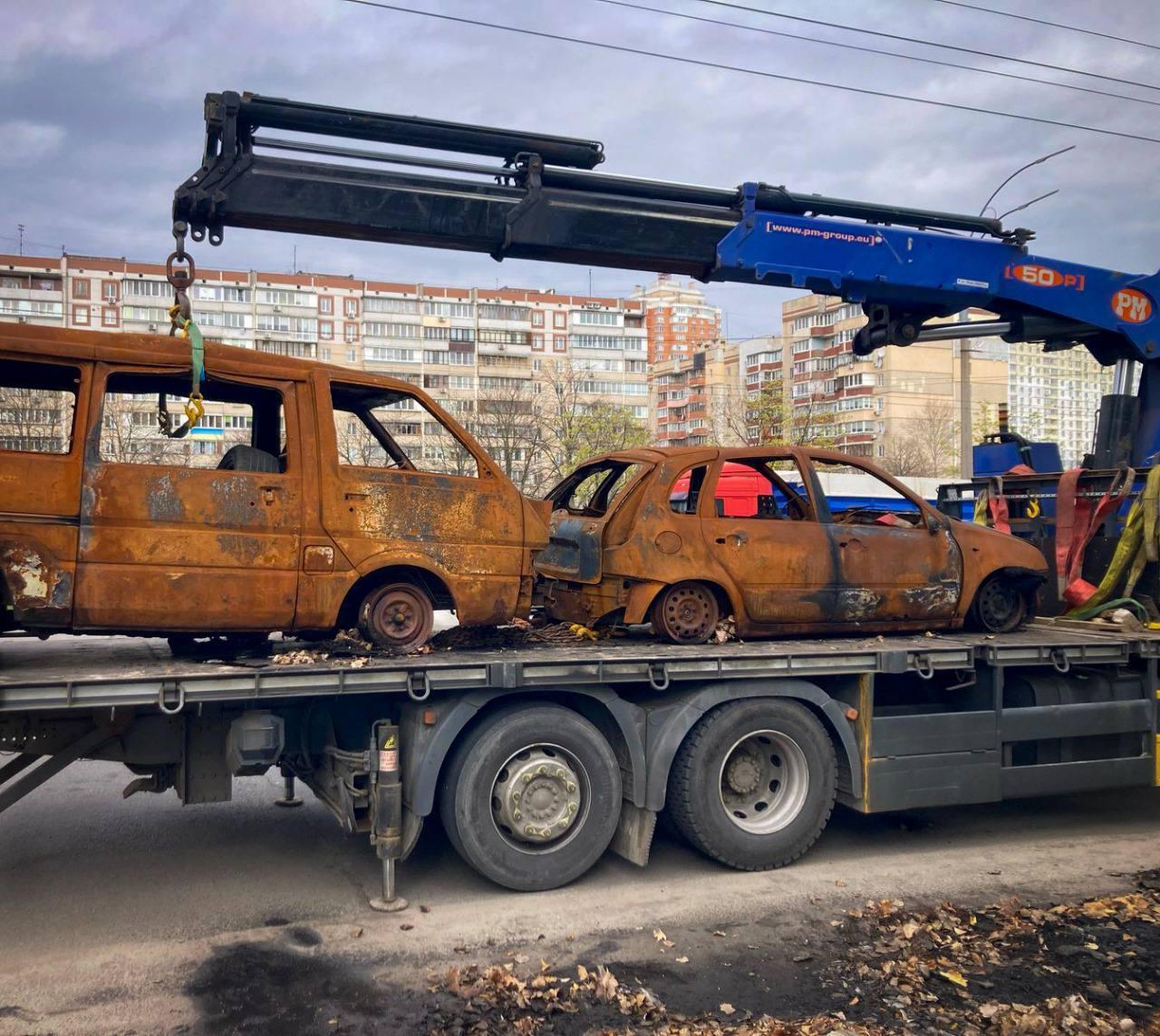 Київ продовжують звільняти від покинутих та знищених автівок на на виконання рішення Ради оборони Києва.