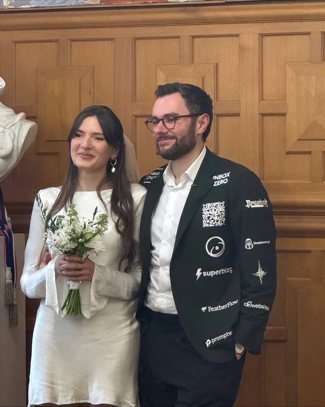 Заробив $10 000 на власному весіллі: жених перетворив костюм на місце для реклами